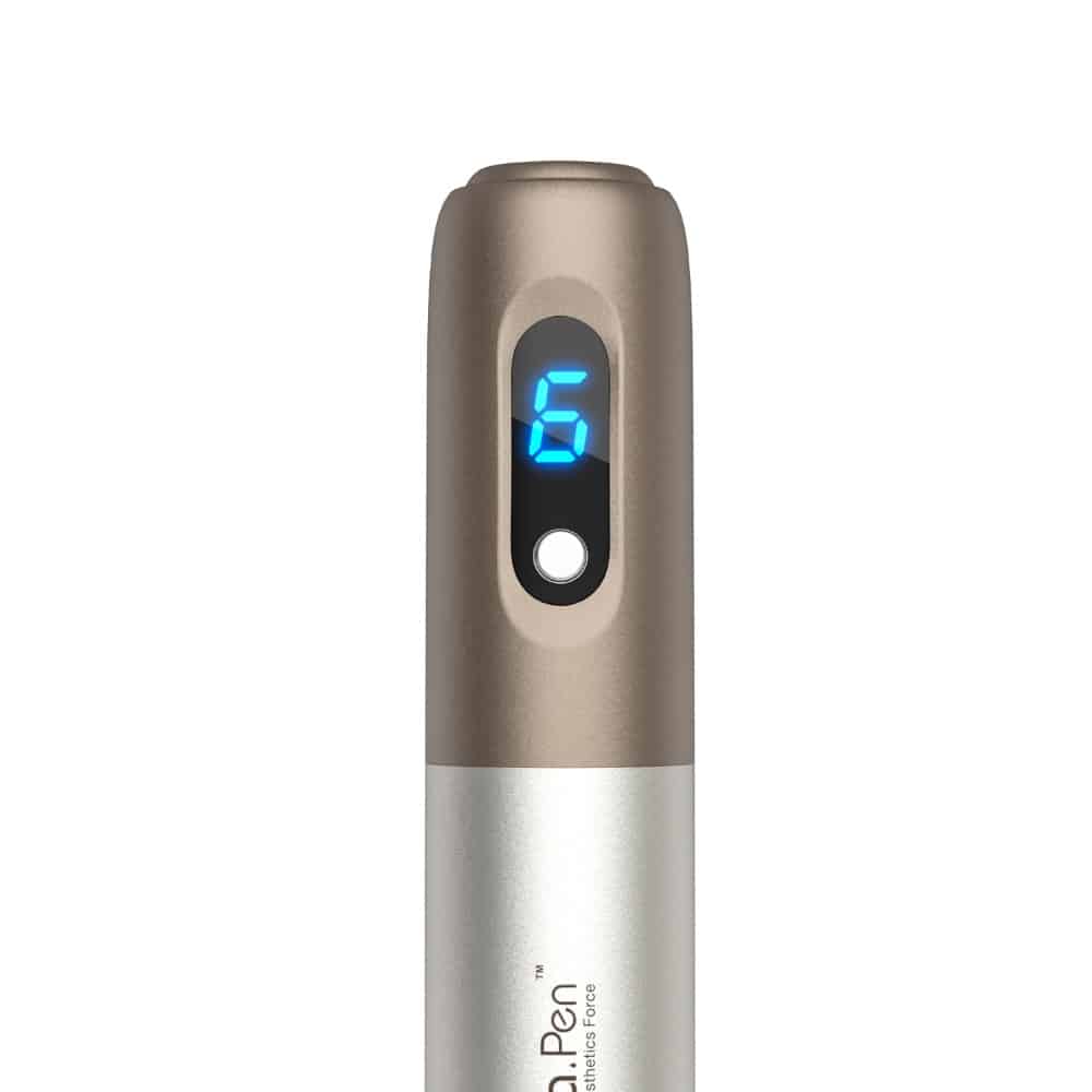 De Hydra.pen H3 Microneedling Dermapen is de meest complete dermapen op de markt! Na het succes van de Hydra.pen H2 heeft het bekende merk Dr.pen de grens weer weten te verleggen. Als grote voordeel ten opzichte van zijn voorganger is de H3 dermapen eenvoudig in diepte in te stellen. Hierdoor kunnen meer behandelingen worden uitgevoerd en zijn minder cartridges vereist. De instelling op de dermapen bepaalt dus de diepte van de behandeling. Daarnaast kan tussen 6 verschillende snelheden worden gekozen en worden op het LED schermpje waarschuwingen gegeven wanneer de batterij 10% bereikt en de dermapen nog 1 minuut te gebruiken is.