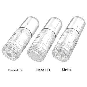 Voor de Hydra.pen H3 Microneedling Dermapen zijn 3 verschillende cartridges verkrijgbaar. De 12pins cartridges zijn voorzien van 12 naaldjes en de Nano Vierkant en Nano Rond cartridges. De naaldjes van de Nano cartridges zijn speciaal ontwikkeld voor de gevoelige- en kwetsbare huid zoals rondom de ogen.